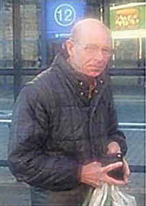 Police would like to speak to the man pictured in the image about this incident. He is described as white, 5ft 11in tall, of medium build and balding. He was wearing a padded coat, dark green chords and was carrying a green cloth carrier bag.