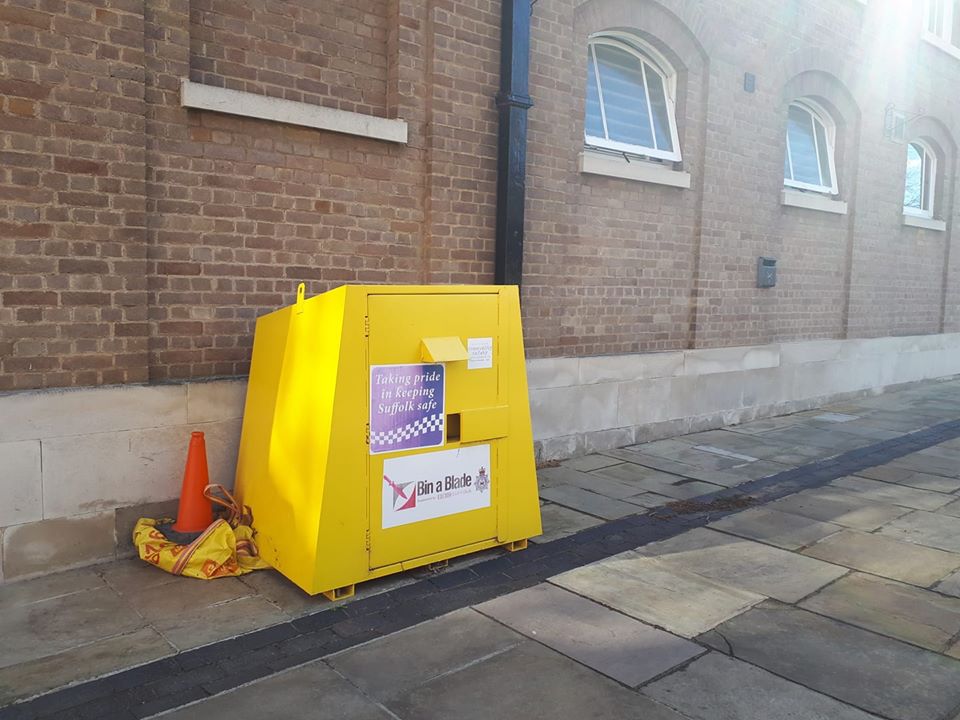 Knife amnesty bin outside Bury St Edmunds Police Station – Bury St Edmunds Police Facebook page